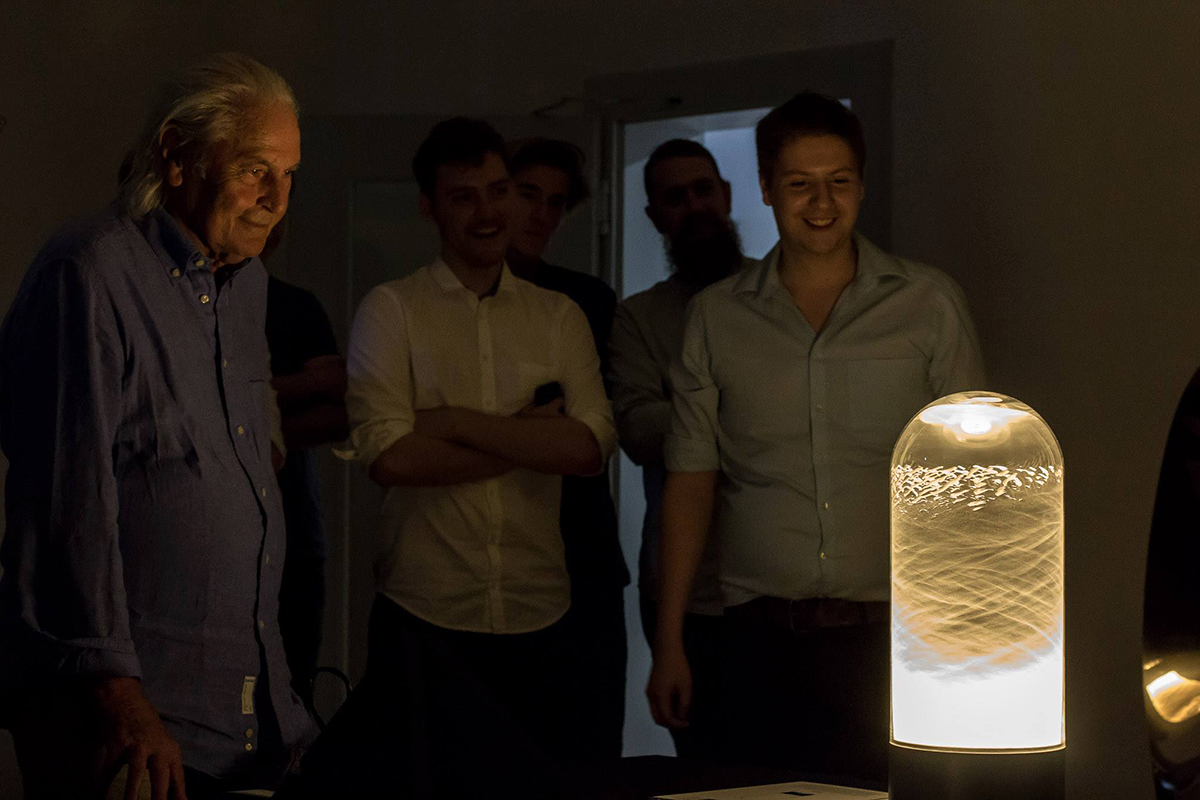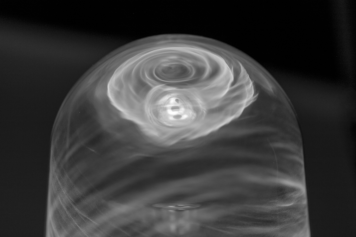In order to showcase the intense luminance of Seoul Semiconductors' LEDs, this project draws attention to the usually empty space that light travels through until we can see it on a surface. The rotating particles create an atmosphere that triggers awe as in a campfire.