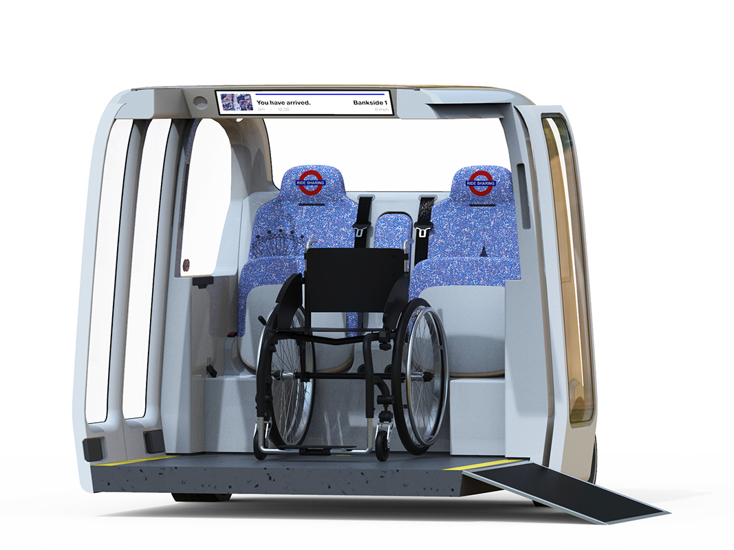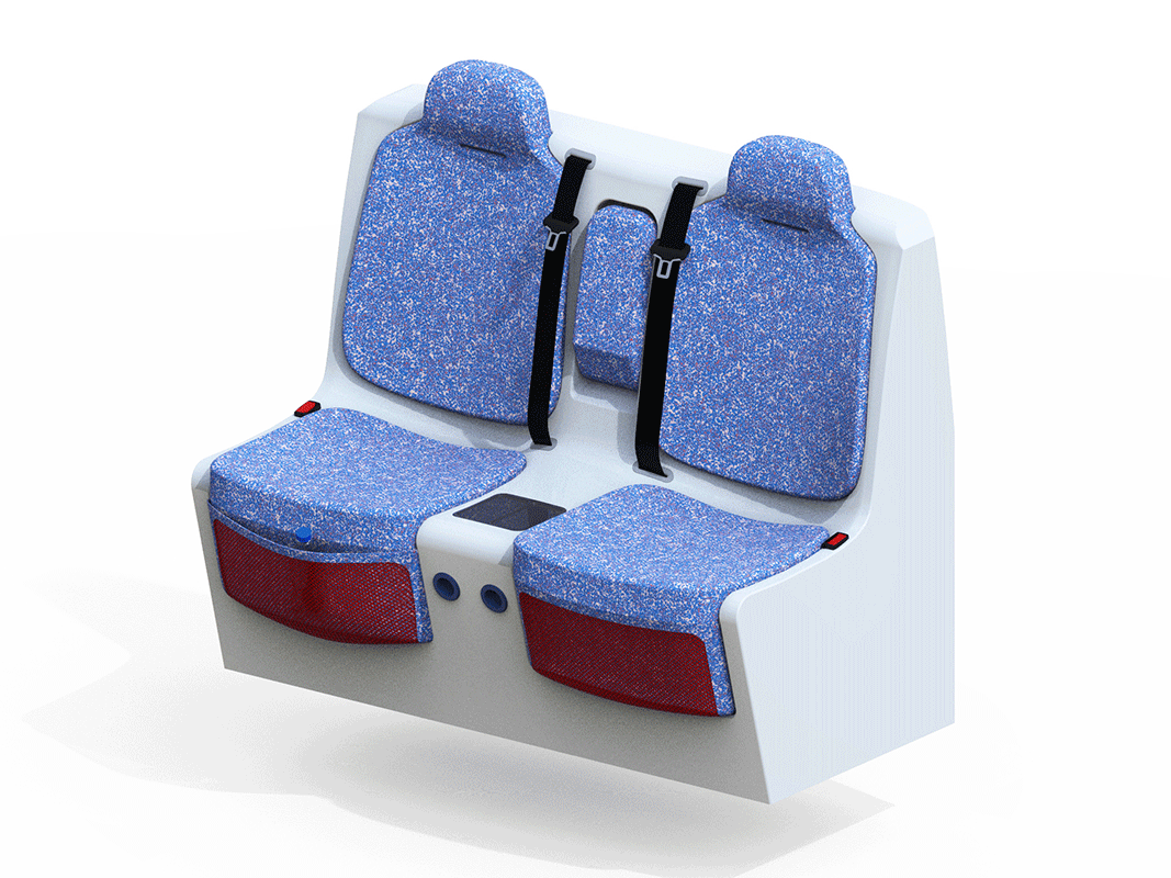 For Italian company Santoni we designed an autonomous city taxi that offers flexibility for the various needs of urban nomads, while showcasing great potential of their 3D-knitting technology. As the use of the vehicle shifts towards public transport the interior reflects that logic being designed for cleanability, maintenance and durability. Therefore the fabrics can be easily customized and branded.